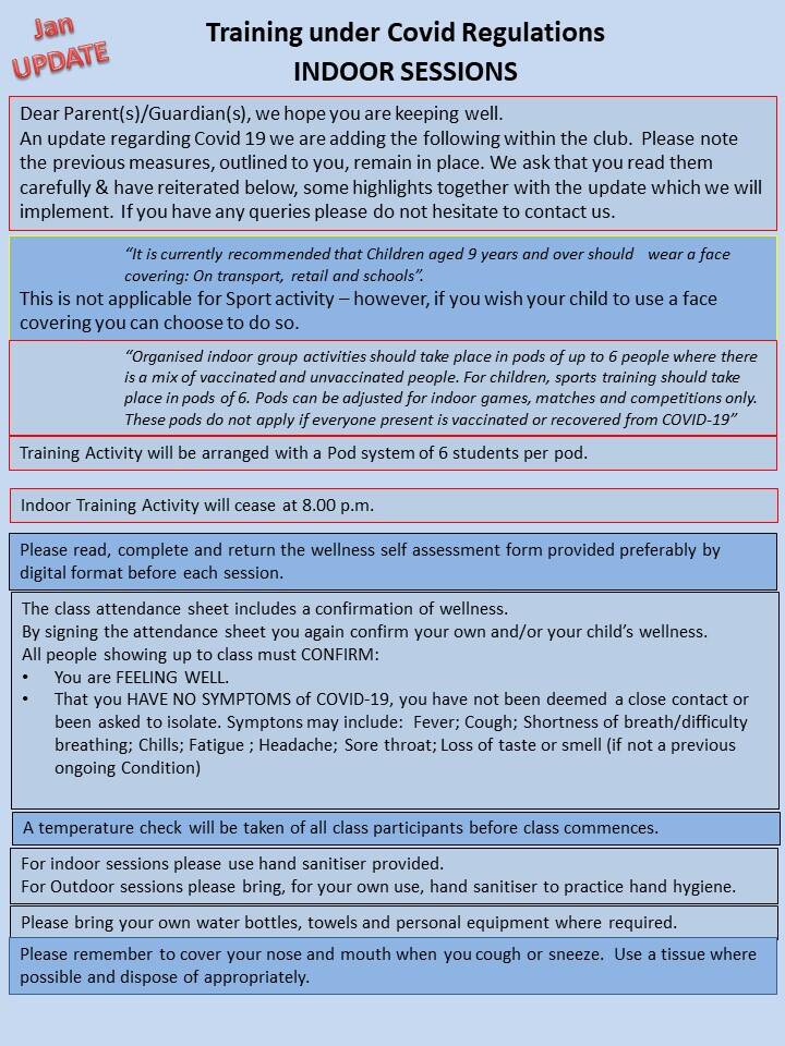 - Observe physical distancing by keeping at least 2 metres apart at all times, preparing for training, training breaks, continuing this distance upon single file entry and exit. Please do not congregate at the beginning or end of the class. This rule continues to apply to everyone except members of the same household.